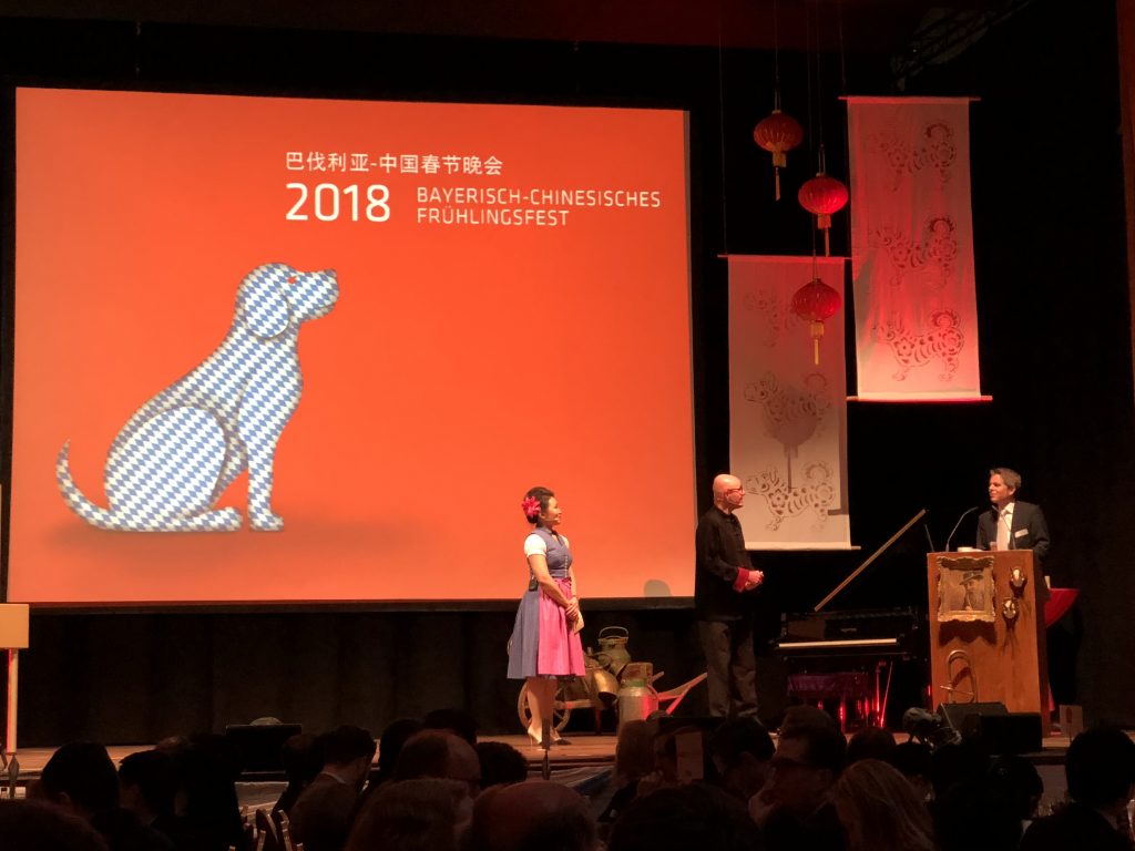 Rund 450 Gäste aus Politik und Wirtschaft Chinas und Bayerns feierten am 1. März 2018 auf Einladung des Chinaforum Bayern e.V. das Bayerisch-Chinesische Frühlingsfest in München. Anlass war der Jahreswechsel in der Volksrepublik, der das Jahr des Hundes einläutete.